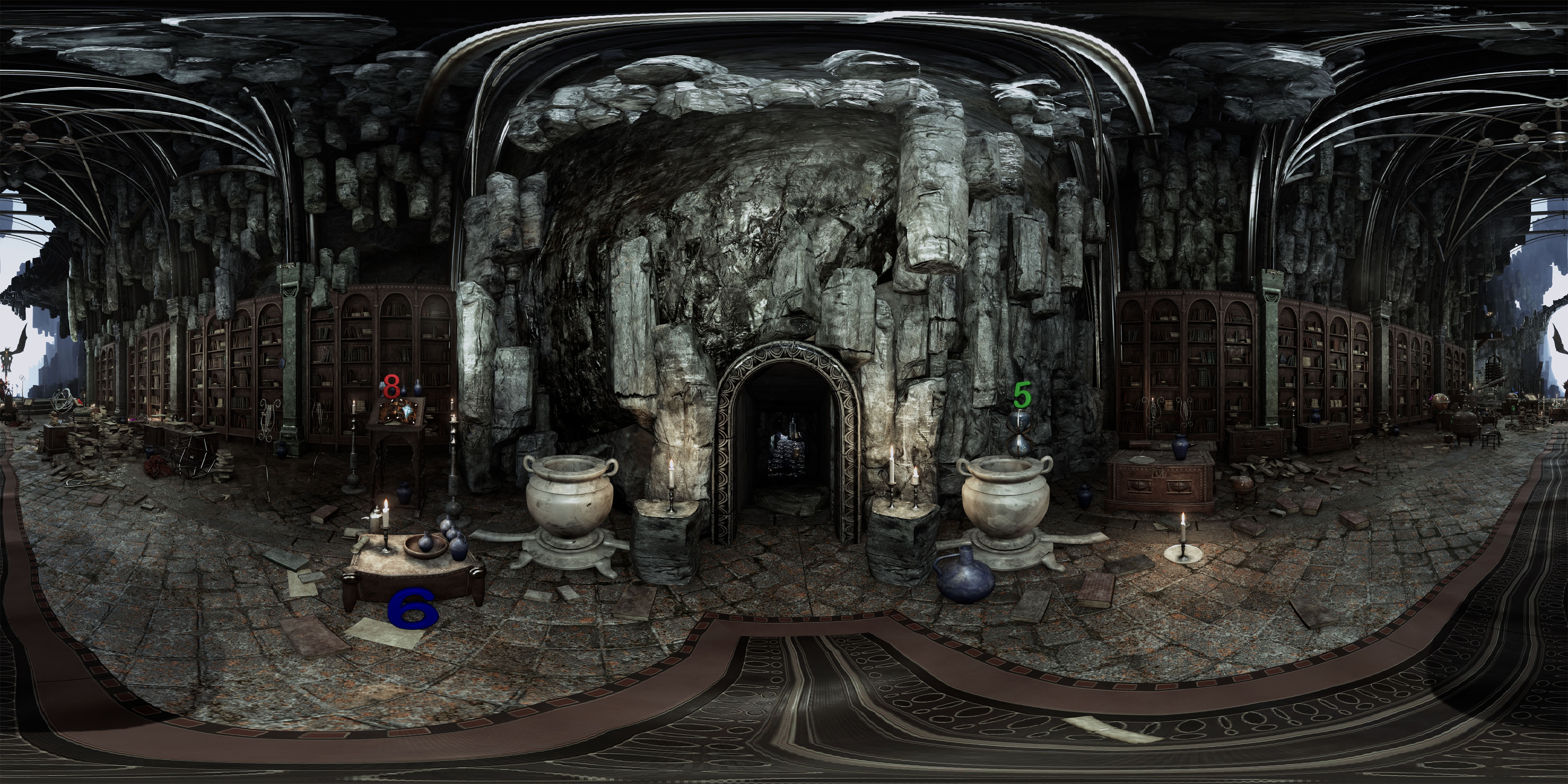 Here are objects that are found inside Merlin’s cave. Be safe as you move around inside the 360 VR tour. Go below to fix Number One’s mistake.
